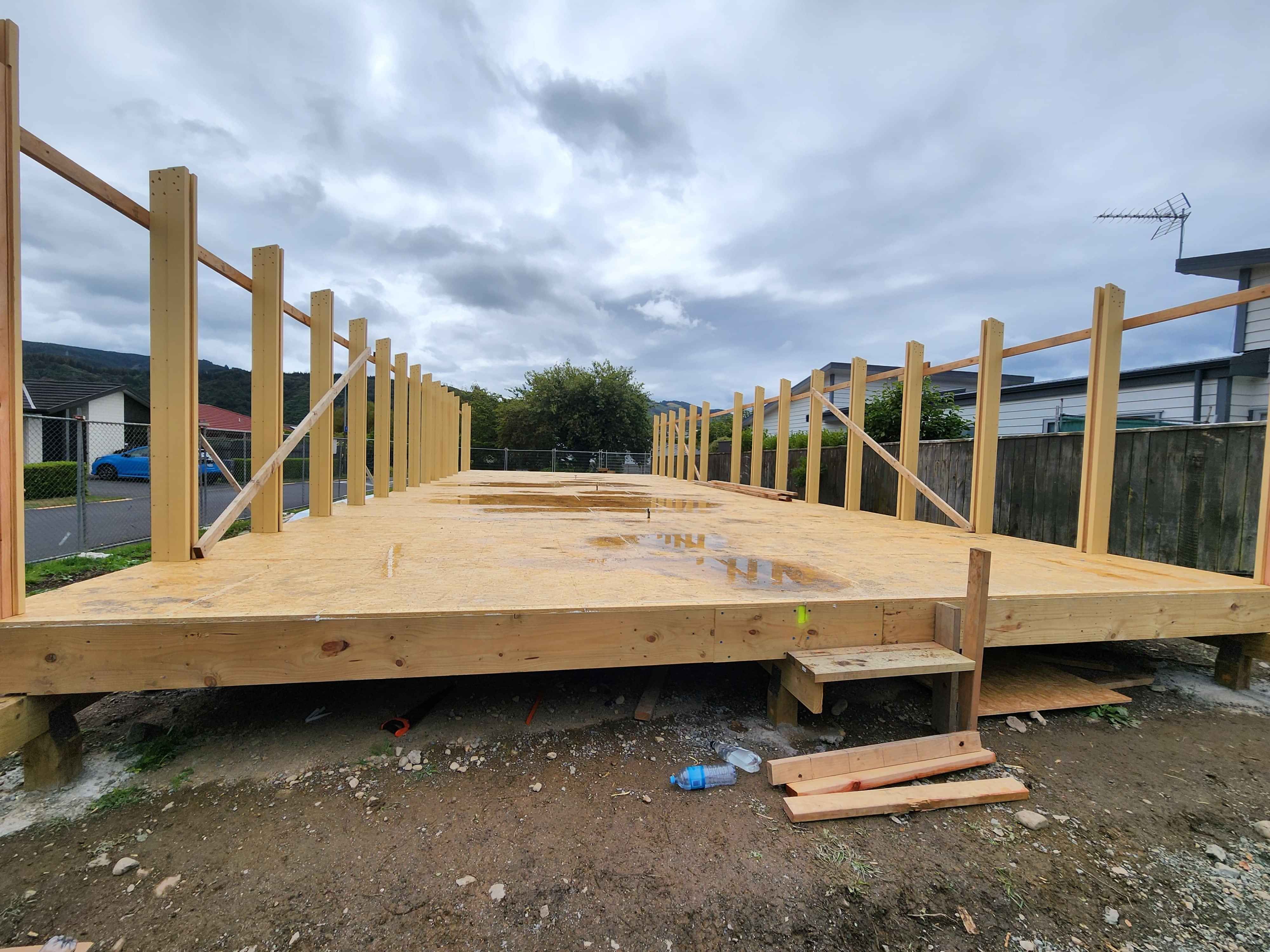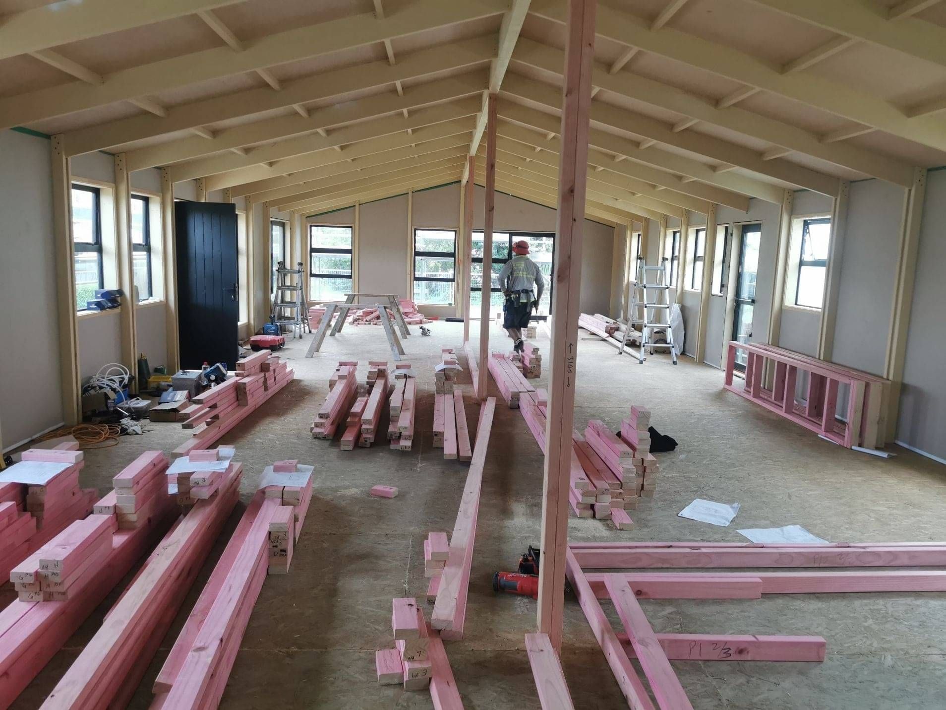 Late next week we will get the floor pack delivery and then begin the subfloor framing.